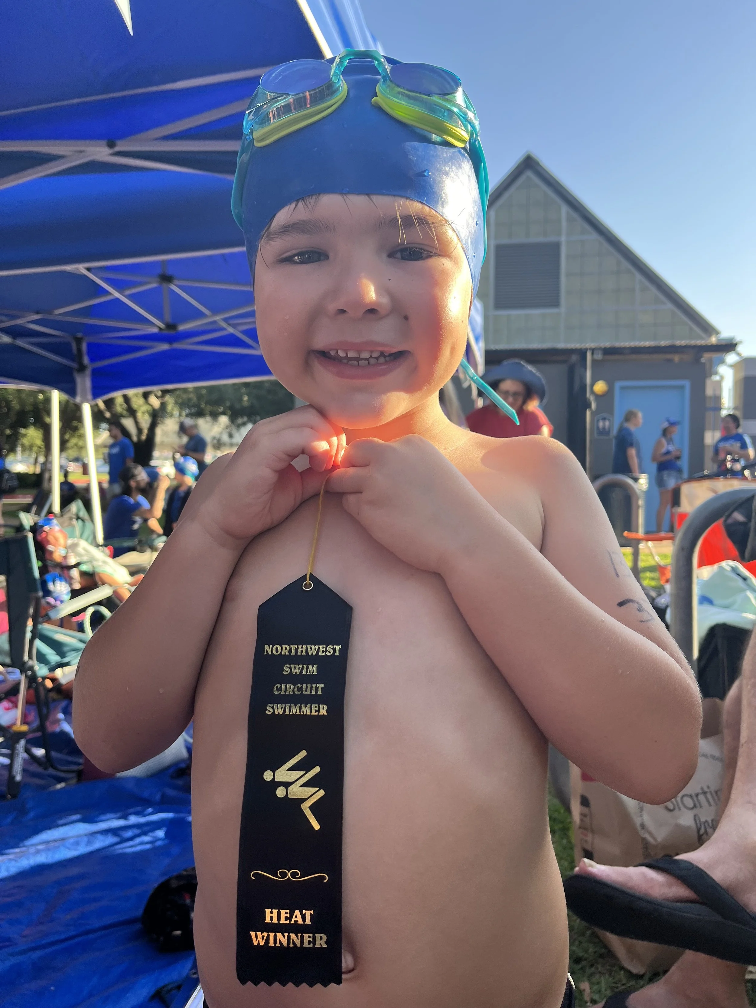 Our son eventually joined the swim team where he won a ribbon on his first heat! The progress our son made with Mr. Thomas in such a short time was outstanding. My initial goal was simply survival skills, but with Thomas he learned different strokes and how to really improve his stroke techniques. Our family is so thankful for Thomas and all he did to get our boy swimming.